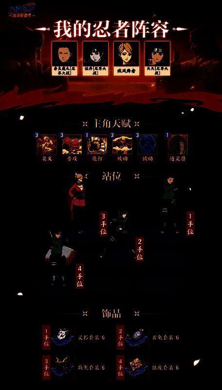 4、选择后攻阵营时,可选择3个自身生存能力较强的忍者,搭配1个输出能力较强的忍者。