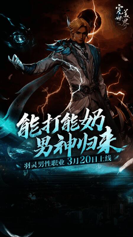 二十年来,完美大陆富有特色的种族当属天生洁白翅膀、耳间有神赐之羽的“羽族”。在3月20日新版本中,神力强大,英朗圣洁的男性羽灵即将登场!仙魔转职焕新加强,掌控雷电能打能奶,是当之无愧的版本之子!