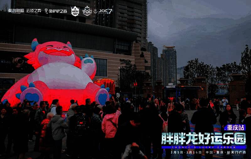 JOC7的帷幕已经缓缓落下,但场外的主题活动却并没随之落幕。作为JOC赛事的标志性吉祥物,胖胖龙也紧跟弈士们的步伐来到了重庆——3月5日-3月16日,胖胖龙好运乐园-重庆站持续开放!3月8-9日及3月14-16日主题运营日期间,弈士们可前往坐落于朝天门广场的胖胖龙好运乐园参与互动赢取好礼;也可畅游重庆参与胖胖龙重庆躺赢打卡活动;又或者前往火锅竞技场与其他同好弈士一起观赛打卡。