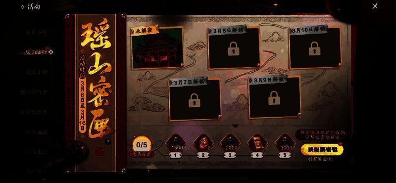 快来参与“瑶山密匣”活动了解瑶族文化吧~3月6日至3月16日活动期间,少侠前往活动-瑶山密匣页面,参与解密收集密匣即可获得月漩珠、天衣礼券、问影晶石奖励。探访巴马神韵之旅即刻启程吧!