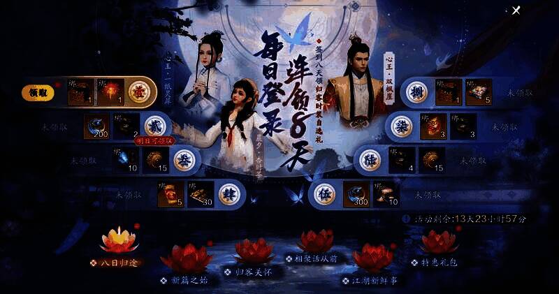 连续八日每日登录游戏,还可领取问影晶石、天衣礼券、绘彩宝匣和自选外观(可在心王·双枫崖、心王·一纸灵犀、晨夕·杏时茶等热销外观中选择并获取其一)等扮靓江湖的道具好礼,同时新增月灵石、昆仑镜、绝品璞玉、曜石·甲子等成长所需的实用资源。