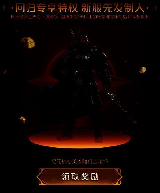 有些活动主打“简单直接,你玩我就送”,比如豪气的回归礼活动,流失30天以上的玩家,上线即可领取15个高级招募令、15个文明招募券,以及永生之谜主城皮肤,这份沉甸甸的见面礼表达了十足的诚意!同时,回归玩家前往新服还可领取3个“纪元核心英雄随机宝箱”,一步领先步步领先。
