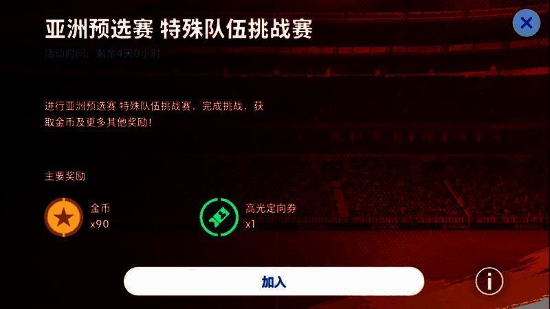 战胜【亚洲预选赛 特殊队伍挑战赛】中的对手,你将赢得【金币】和【高光定向券】作为奖励。完成更多阶段任务,可以获得更丰厚的奖励!你需要挑战多位强敌,才能成为最终的胜者!