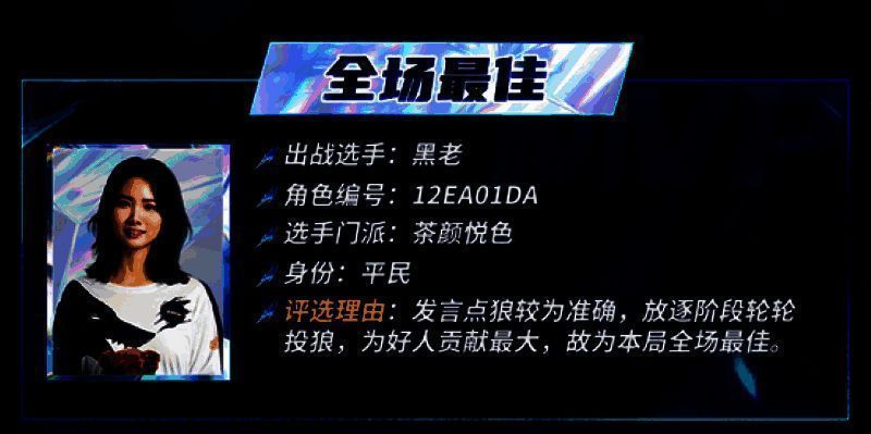 来自茶颜悦色门派的选手黑老也表现得可圈可点,虽然是平民牌,但逻辑十分清晰,在发言中点狼十分准确,放逐阶段更是做到了每轮均能投中狼人。