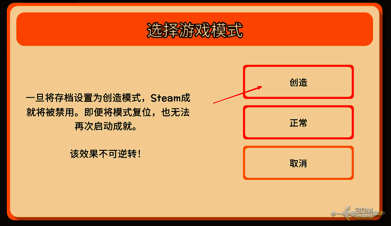 一旦将存档设置为创造模式,Steam成就将被禁用。即便将模式复位,也无法再次启动成就。