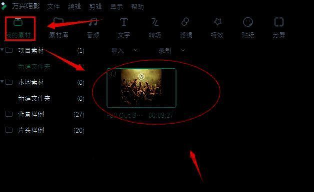 1.首先,我们打开万兴喵影界面后,在我的素材选项中,导入本地音乐文件