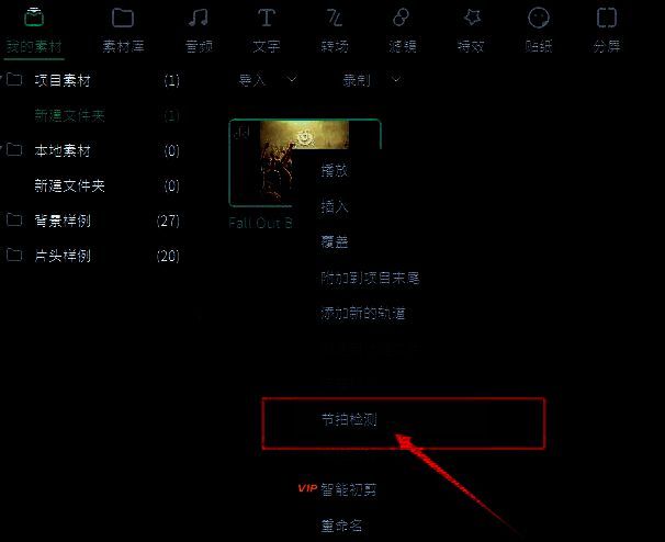 2.然后,鼠标右键点击音频,找到节拍检测按钮