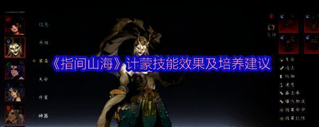 计蒙在指间山海中定位为水系控制型辅助角色,原型出自《山海经》中掌管风雨的神兽。下面是小编给大家带来的《指间山海》计蒙技能效果及培养建议,感兴趣的小伙伴们一起来看看吧。