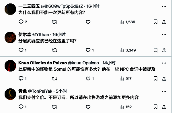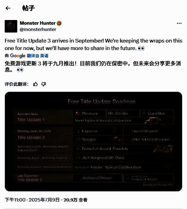 近日,《怪物猎人》官方在社交平台X重申《怪物猎人:荒野》第三弹大型更新将于9月推出,此举让广大玩家感到不满。