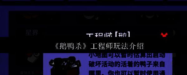 鹅鸭杀工程师怎么玩?鹅鸭杀是一个能在线上进行狼人杀对抗的游戏,里面会随机给玩家分配身份,能和其他成员一起共同隐蔽身份完游戏里关于角色的身份设定非常丰富多样,每个身份也都会有不同的设定,鹅鸭杀工程师介绍,是接下来要跟大家分享的内容,了解了这些角色的职业特性之后,才能在对战的过程中,根据玩法灵活操控角色。