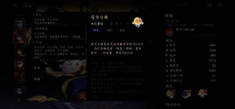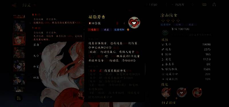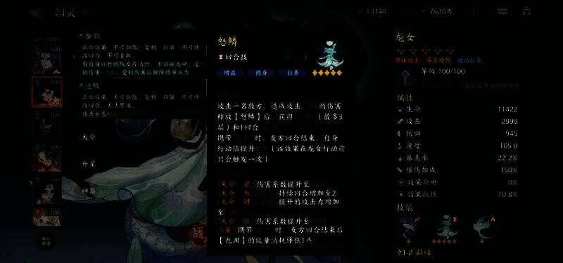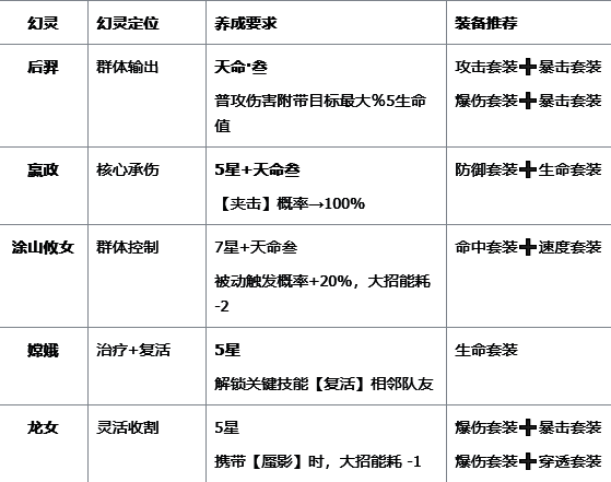 5.龙女(后排):5星携带【【蜃影】】大招【九渊】能耗减1,作为单体输出幻灵,放后排优先收割残血。