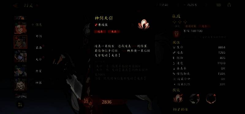 3.涂山攸女(控场大师):7星+天命叁,被动触发概率+20%,大招能耗 -2,控制技更频繁、更稳定、启动更快,是打乱敌方的核心。