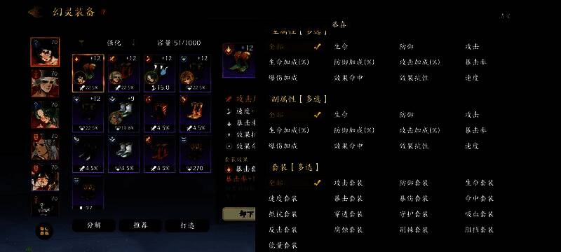 这个功能主要是后期玩家装备数量太多,不好找自己需求装备时,直接勾选自己需要的词条,筛选就能快速找到自己需求的装备去强化。