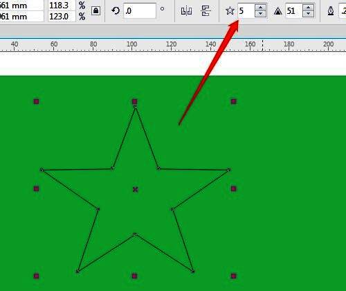 然后,属性栏中改5边,文档中画出五角星(如图所示)。