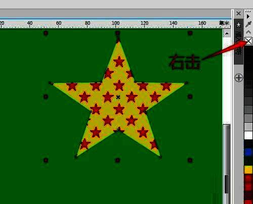 最后,按Shift键在圆圈处调整填充的五星,属性栏修改颜色,右击调色板中X,取消五角星边线(如图所示)。