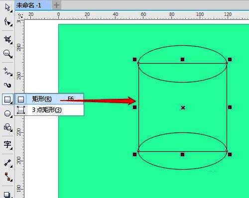随后,用矩形工具,在两个椭圆间绘制一个矩形(如图所示)。