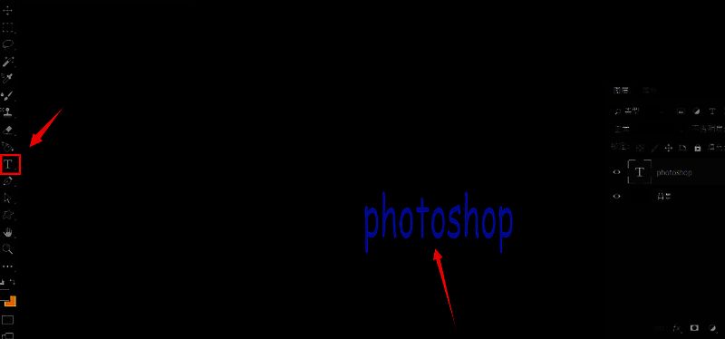 1.首先,在ps软件中,新建一个黑色画布,点击文字工具并输入蓝色字号文本