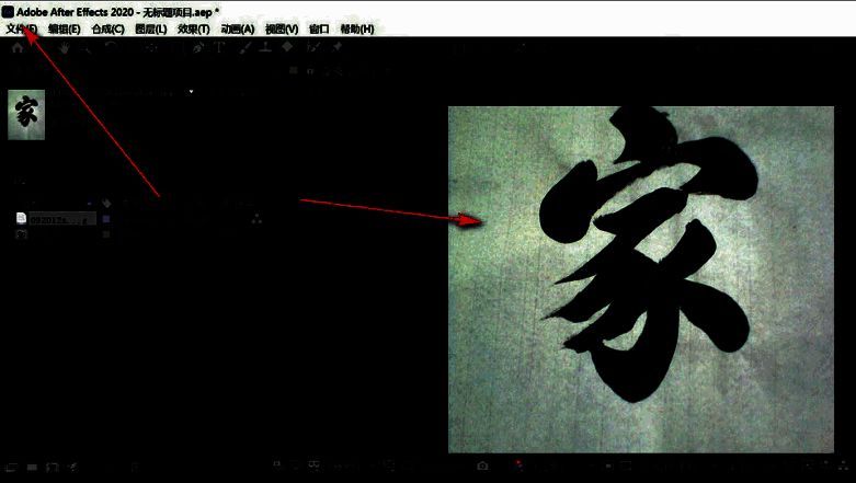1.首先,打开Ae软件界面后,点击左上角的文件菜单,打开编辑好的文件素材