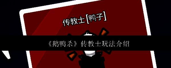鹅鸭杀传教士怎么玩?鹅鸭杀支持多名成员参与,玩家可以和好友,一起进行一场线上狼人杀对决,和传统狼人杀玩法不同的是,游戏里玩家不再是进行单纯的推理,而是需要进入到游戏里,去完成各种不同的任务,鹅鸭杀传教士介绍是这一期要带来的内容,里面会设定很多不同的角色,每个角色都有自身的特性和所属阵营,下面就会针对传教士进行详细的介绍。