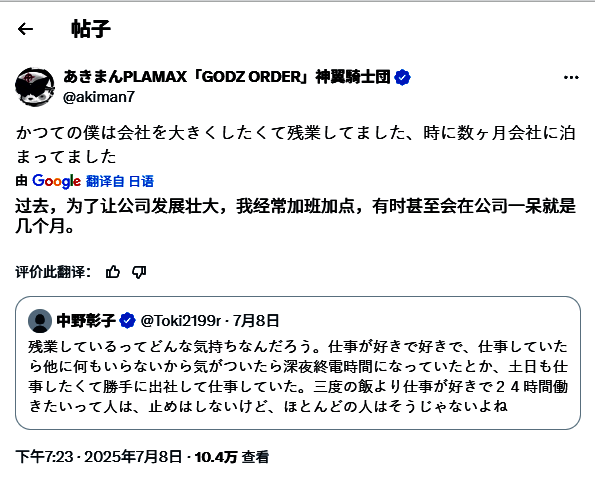在日本职场文化中,加班早已不是新鲜事。但在创意行业中,加班并不总是由公司强迫,许多人出于自愿而选择留在公司加班。日前,一位业内动画师在X上发问:“自愿加班的感觉到底是什么样的?”对此,安田朗回应称,自己就是那种为了目标而主动加班的人,他的目标是让卡普空成长壮大,超越其他竞争对手。