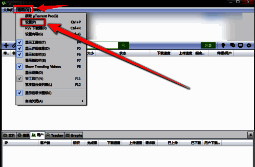 1.首先,打开uTorrent界面后,点击选项菜单下的设置按钮
