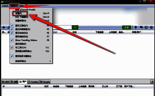 1.首先,打开uTorrent界面后,点击选项菜单下的设置按钮