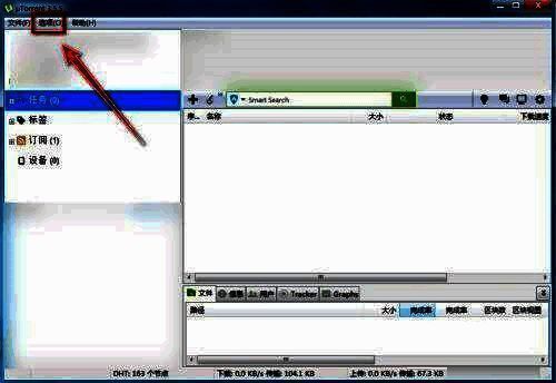 第一步:打开uTorrent,点击菜单栏上的“选项”(如图所示)。