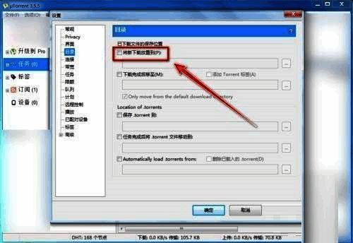 第四步:在“目录”菜单中,勾选“将新下载放置到”(如图所示)。