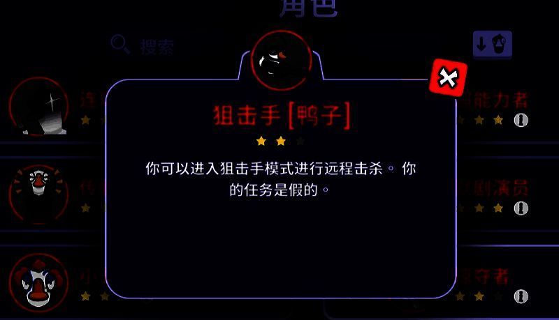 狙击手这个角色的对抗性是比较强的,它一共有两个技能,第1个技能是瞄准,在实战之后狙击手将会进入瞄准状态,可以通过屏幕上的准星来瞄准敌对目标。当你选定好想要攻击的角色之后,就可以使用射击技能来对其造成击杀。游戏内是有友商设置的,因此如果你不小心误伤了队友或者是npc的话,将会触发惩罚机制,有可能是增加你的任务进度,也有可能会直接暴露你自身的位置,后者是十分危险的,你的身份可能就直接显露在玩家们面前了。