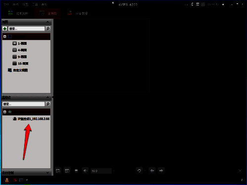 然后弹出“主预览”的界面,在主预览界面的左下角的“监控点栏目”下,我们可以看到之前刚刚添加的设备,如下图: