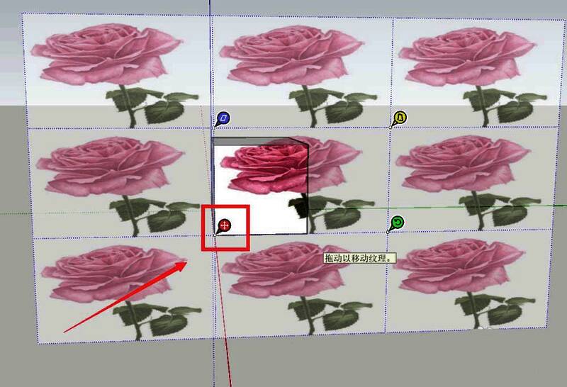 这时我们选中之后就会显示如图所示页面,图中的四个小图标分别代表不同的操作类型。图中所示红色方框内的为移动选项,用来调整花朵的位置。