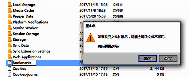 然后对Bookmarks.bak重命名为Bookmarks