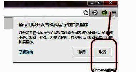 “请停用以开发者模式运行的扩展程序。以开发者模式运行的扩展程序可能会损害您的计算机。如果您不是开发者,那么,为安全起见,应停用以开发者模式运行的扩展程序。”这样每次提醒其实也蛮烦的。