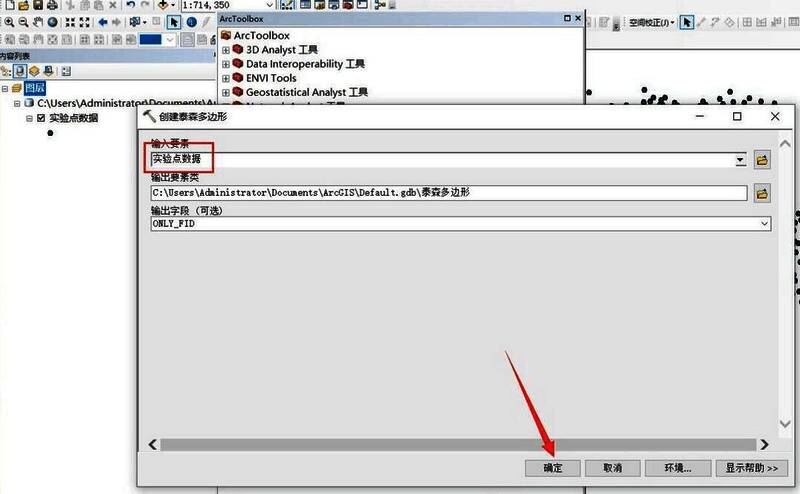 5、输入要素为“实验点数据”,点击【确定】。