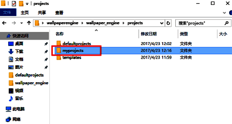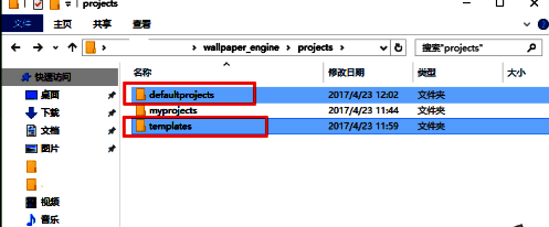 3.然后双击打开wallpaper_engine文件夹,会出现下图中的界面,然后在文件夹中找出图中红框选中的projects文件夹,然后继续双击,进入下一步。