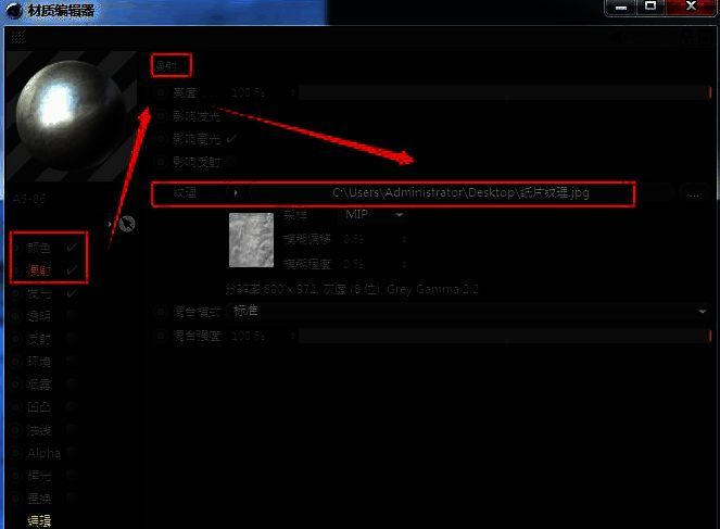 5.在打开的材质编辑器窗口中,勾选颜色、漫射、发光按钮,并在漫射栏目中找到并加载纸片纹理效果
