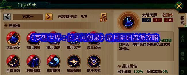 《梦想世界:长风问剑录》暗月阴阳流派攻略