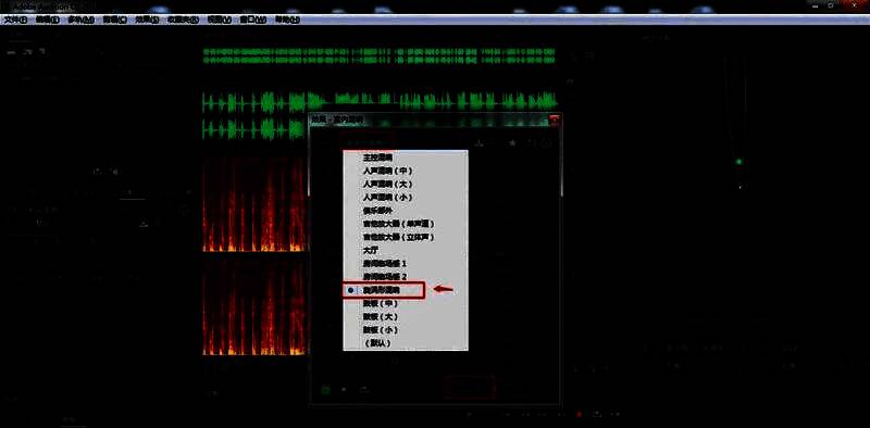 4、点击顶部工具栏中的“效果”——“混响”——“室内混响”。