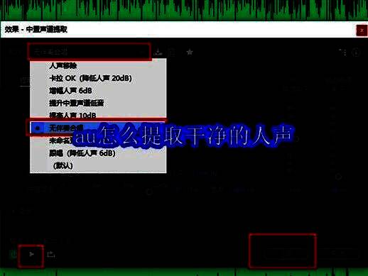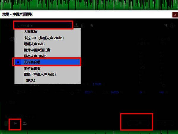 3、接着停止预览,点预设后的下拉框,选【无伴奏合唱】,点【应用】即可提取。