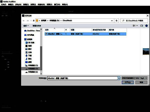 1、首先打开AU软件,按【ctrl+o】,选择音频文件进行导入。