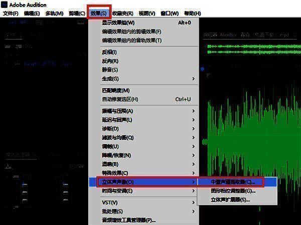 2、然后点击【效果】,点击【立体声声像】,点击【中置声道提取器】。