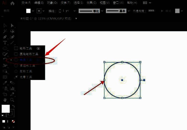1.首先,在ai软件中,新建画板,点击椭圆工具按钮,按住shift键绘制一个正圆