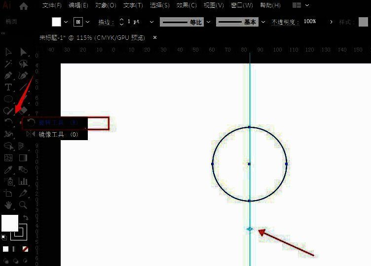 2.然后,鼠标点击旋转工具,按住键盘的Alt键单机圆形空白处确定轴心
