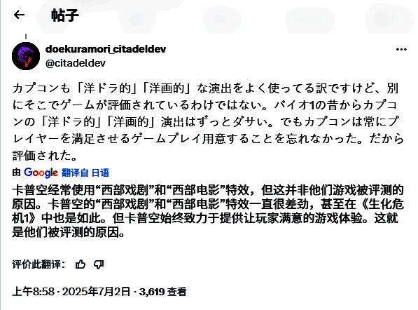 此外,Doekuramori也提及小岛工作室和Capcom等厂商,认为即便拥有一定的国际制作水准,在模仿西式电影语言时也会显得冗余或“过度解释”。相比之下,《使命召唤》之所以能被广泛接受,是因为其开发者本身拥有相关背景知识,并且信任玩家具备理解能力,无需反复说明。