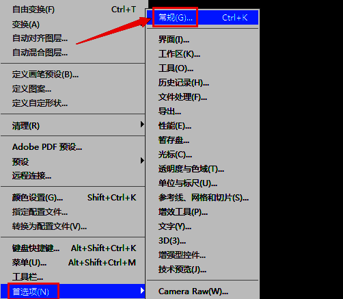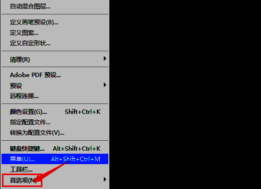 1.首先,打开ps界面后,点击编辑菜单中的首选项按钮