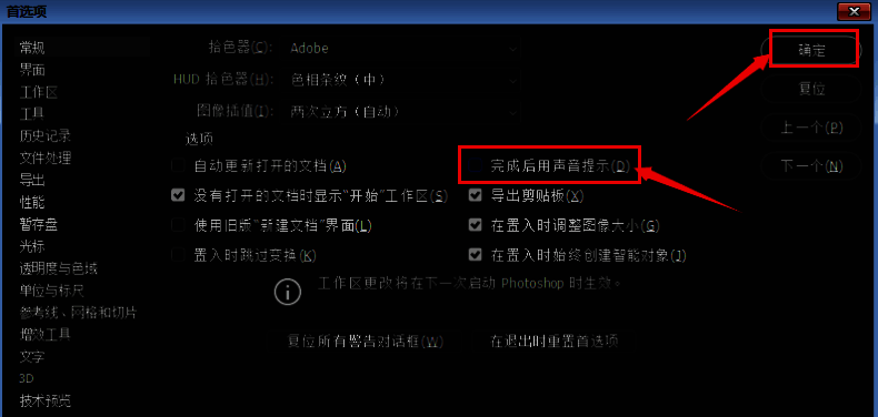 3.接着,取消勾选声音提示选项,并点击确定按钮保存即可