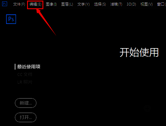 1.首先,打开ps界面后,点击左上角的编辑菜单