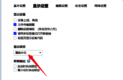 第三步:点击显示设置,选择简体中文即可。