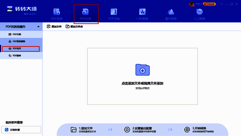 转转大师是一款专业的PDF处理的工具,满足了用户们的不同需求。这里为大家带来关于文件合并的方法步骤分享,还不知道如何合并的小伙伴快一起来看看吧!