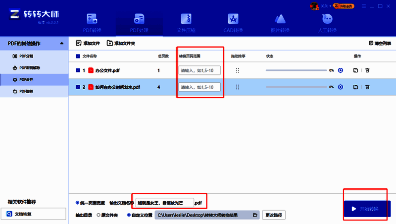 4.确定合并范围和输出文件名。在界面上指定你想要合并的页面范围,并为生成的合并文件设置一个合适的文件名。